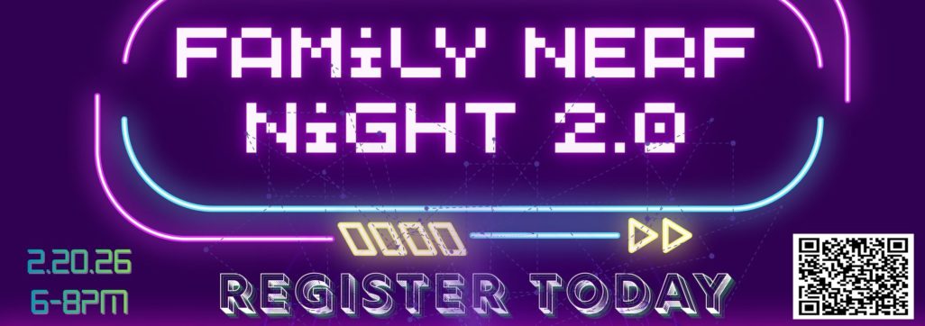 “Family Nerf Night 2.0” will take place 6:00 to 8:00 on Friday February 2oth. This year will feature 2 nerf arenas for 2 separate age groups. We encourage all “Nerfee’s” (kids) and “Nerf Herders” (Parents) kids to bring their nerf guns. We will provide the ammo. Power Up snacks will be served to ensure everyone is locked and loaded for a great time.