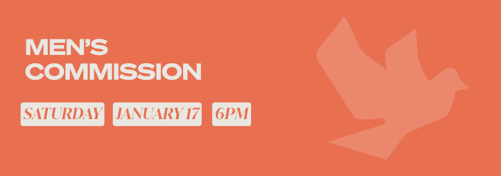 Men’s Commission will be on January 17th at 6pm. Dinner will be served followed by Pastor Josh sharing his heart with us regarding the high calling that God has given men as leaders and servants.