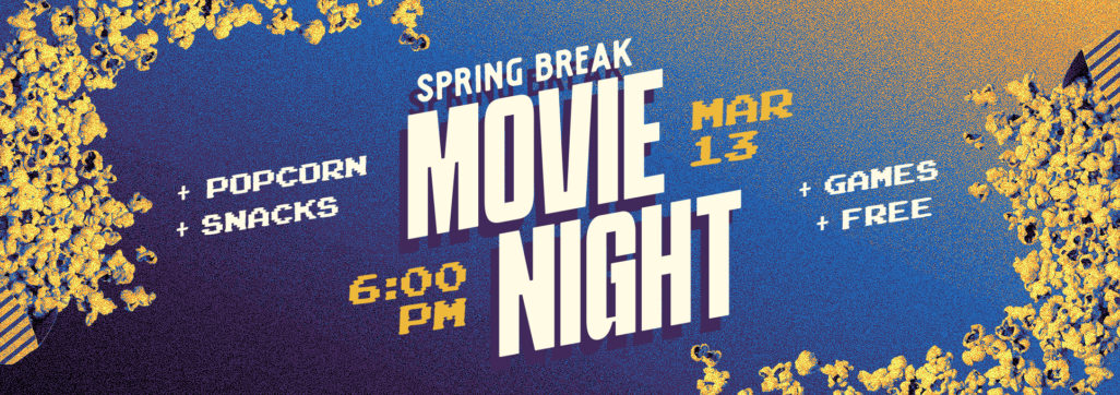 Grace YTH is hosting a Spring Break Movie Night on March 13th at 6pm in the Sanctuary.